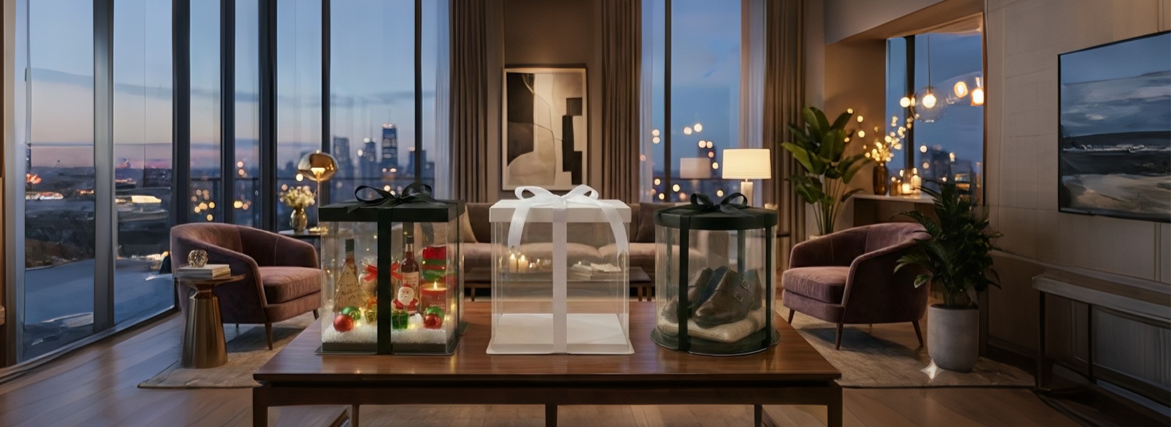 Yılbaşı kutuları neşenin, sıcaklığın ve yenilenmenin sembolüdür. Asetat kutular bu kategoriye çok yakışır çünkü yeni yıl ruhunda bir parıltı vardır. Kutunun içindeki mum, süs, kurabiye ya da kişisel bir hediye, şeffaf yüzeyin arkasında daha davetkar görünür. Işığın yansıması bile yılbaşı temalı bir fotoğrafı andırır. Bu kategori hem bireysel hem kurumsal hediyelerde sıkça tercih edilir ve asetat kutunun en çok kendini gösterdiği alanlardan biridir.